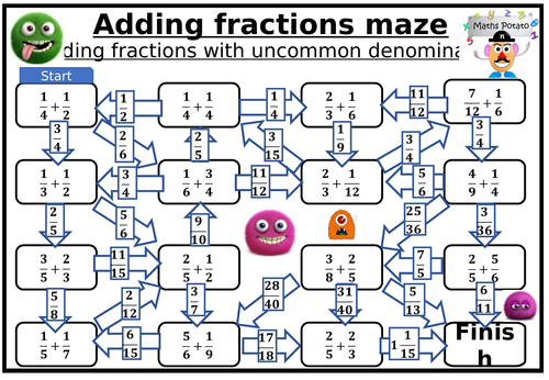 Adding And Subtracting Fraction Maze Proper Fractions And Mixed Numbers Teaching Resources